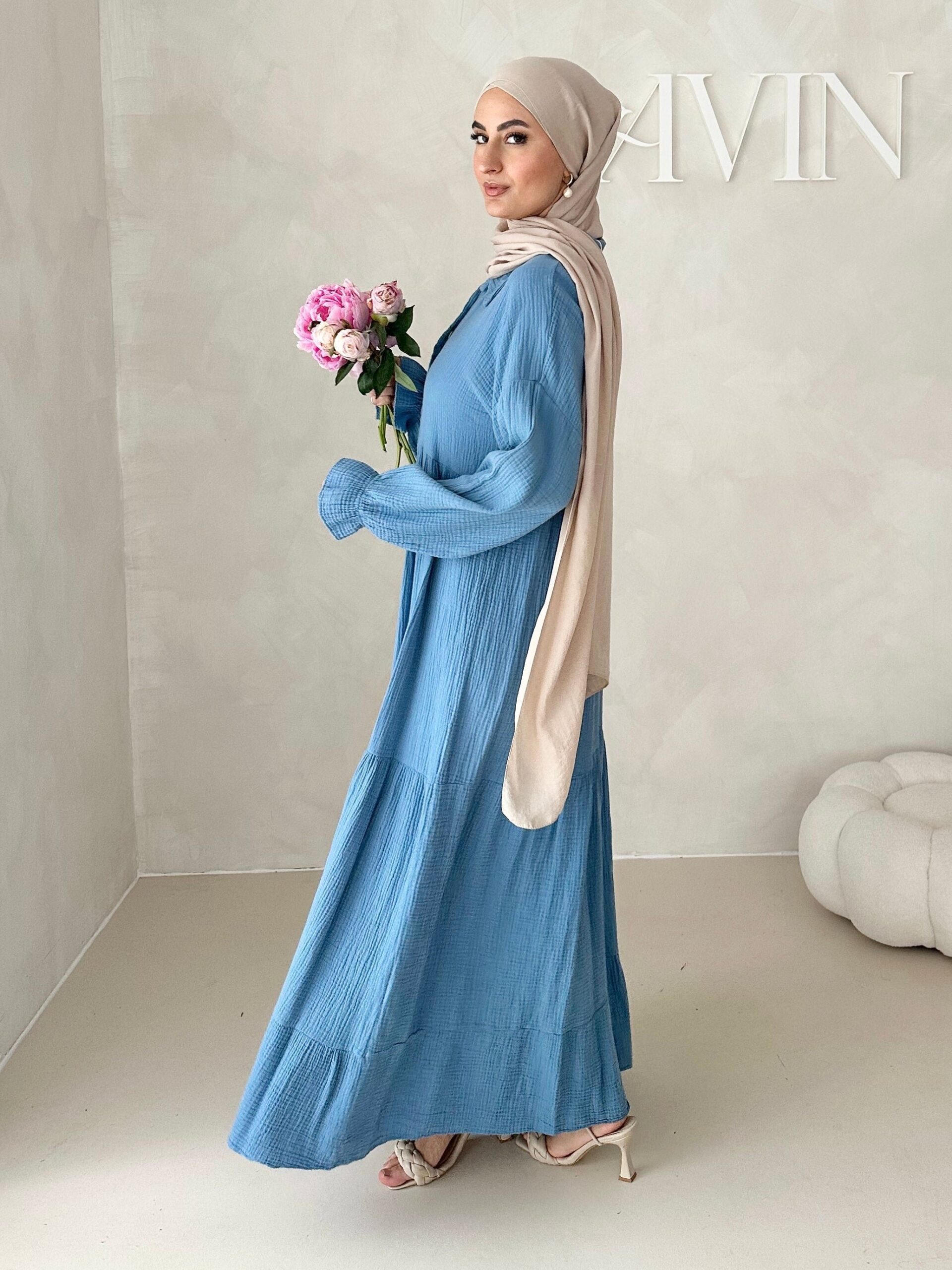 Dieses lange Tunika Kleid aus superweichem Musselin-Stoff (100 % Baumwolle) ist dein neuer Sommer-Favorit. 🌞 Einfach reinschlüpfen und wohlfühlen! Es sitzt locker, luftig und fühlt sich angenehm weich auf der Haut an.